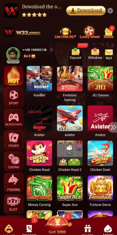 You can install the app by downloading the W33 Free download APK from the official W33 com platform.
