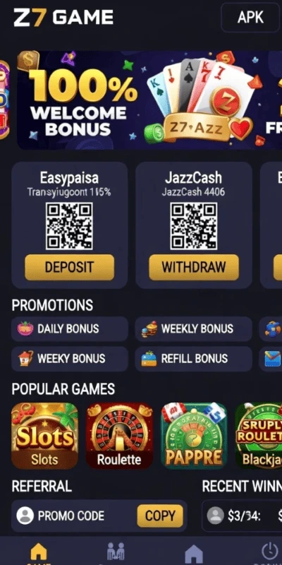 One of the attractive parts of the Z7 Game APK is the bonus system. Many users receive welcome bonuses after creating an account. The platform may also offer daily login rewards, special promotions, and event bonuses that help players stay active on the app.